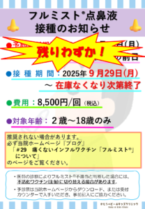 詳細は当院ホームページ『ブログ』「#31 2025年度インフルエンザワクチン接種について」をご覧ください。